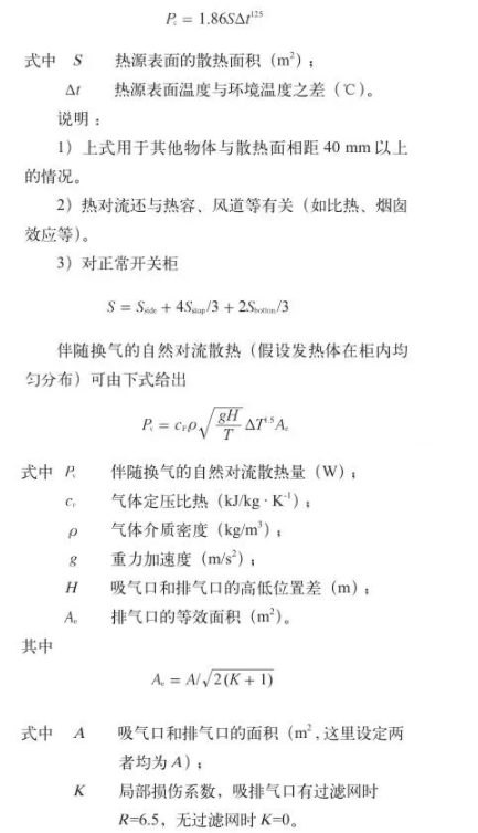 (2)熱對流是物體表面與相接觸的流體間有溫差時(shí)出現(xiàn)的傳熱現(xiàn)象。柜體表面、氣箱表面或熱源表面的自然對流散熱可用下式估算