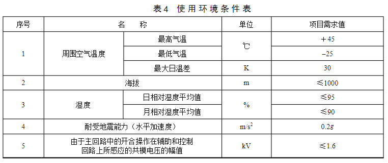 4使用環(huán)境條件表低壓電纜分支箱使用環(huán)境條件見表4。特殊環(huán)境要求根據(jù)項目情況進行編制。