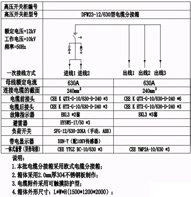 二、電纜分支箱電氣一次部分