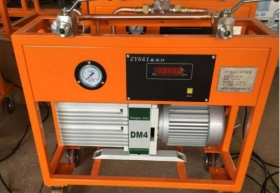 4)最有用最專業(yè)的辦法,是SF6抽真空補(bǔ)氣設(shè)備,單級(jí)旋片泵極限真空度能夠到達(dá)10Pa,雙級(jí)旋片泵理論極限真空度可到達(dá)6.2*10-4pa,但是流量不大于100m3/h;