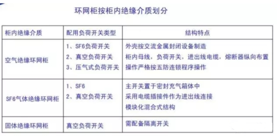 按絕緣結構分:空氣絕緣、復合絕緣、SF6氣體絕緣、固體絕緣環網箱按產品設計結構分:歐式環網箱和美式環網箱