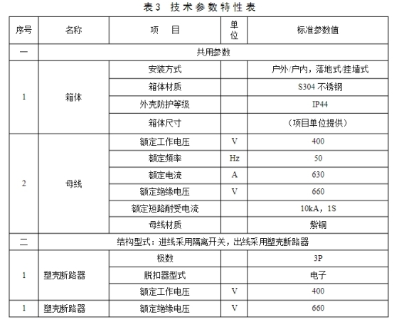 2.1低壓電纜分支箱技術參數低壓電纜分支箱技術參數見技術標準專用部分的技術參數特性表。