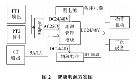 2.6智能電源環(huán)網(wǎng)柜的操作組織、操控器、通訊終端等二次設(shè)備都需求完畢不連續(xù)供電。為了行進供電的可靠性,請求在供電電源失電時,二次回路仍然會有電源,能夠持續(xù)可靠的動作,環(huán)網(wǎng)柜中有必要具有備用電源。為了行進供電電源的可靠性本電源的規(guī)劃首要選用了如下辦法:(1)環(huán)網(wǎng)柜普通選用雙進線,兩條進線互為備用給電源的充電模塊供電,當其中一條進線失電時,由繼電器將另一條進線的220V電源轉(zhuǎn)給充電模塊,保證整個柜子的二次回路持續(xù)供電。(2)當環(huán)網(wǎng)柜的兩條進線都失電的時分,為了使二次回路持續(xù)帶電,需求由備用電源持續(xù)供電。如今首要的備用電源是不連續(xù)電源(UPS)和蓄電池,還有的選用超級電容供電。為了行進供電的可靠性,本電源方案選用蓄電池與超極電容相分離,兩種電源可互為備用,能夠進一步行進供電的可靠性。智能電源的方案如圖2所示。