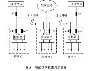的區(qū)段,兩頭都能或許都不能檢測到缺陷信號的區(qū)段則不是缺陷線路,所以可快速簡單的將缺陷點定位在K12和K21之間。開關(guān)K12會跳閘,開關(guān)K21堅持分閘狀況并閉鎖,將缺陷區(qū)段切除。配網(wǎng)主站接納到阻隔勝利信息,經(jīng)過調(diào)度主動化體系將開關(guān)K11合閘,康復(fù)非缺陷區(qū)域供電。同理,當在F2處產(chǎn)生缺陷時,集中式智能操控器將搜集到的缺陷信號傳輸?shù)脚渚W(wǎng)主站,配網(wǎng)主站對缺陷信號停止分析和邏輯判別。經(jīng)過缺陷點處在兩頭感遭到信號不通的區(qū)段的判據(jù),將缺陷定位在K22和K31之間。開關(guān)K3會跳開然后主動重合,開關(guān)K31、K22跳開后不再閉合,將缺陷區(qū)段切除。配網(wǎng)主站接納到阻隔勝利信息,經(jīng)過調(diào)度主動化體系將開關(guān)K21合閘,康復(fù)非缺陷區(qū)域供電。在整個過程中,從發(fā)現(xiàn)缺陷到缺陷阻隔最終將非缺陷區(qū)域康復(fù)供電所需求的時間非常的少,能夠最大極限的行進供電的可靠性,這是選用智能環(huán)網(wǎng)柜的優(yōu)越性地址